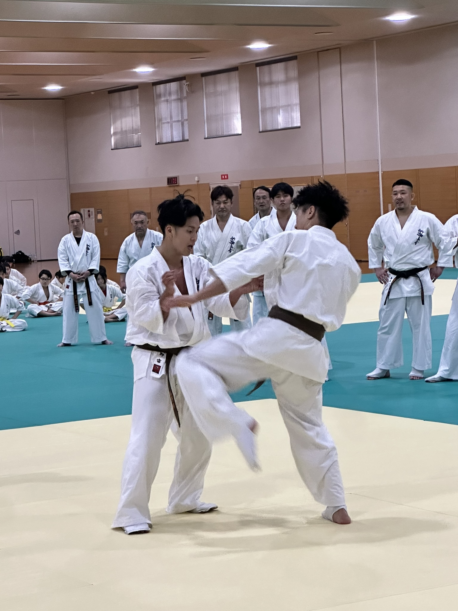 中でも会場の視線を集めたのが、濱野宙1級の昇段審査における10人連続掛け組手です。